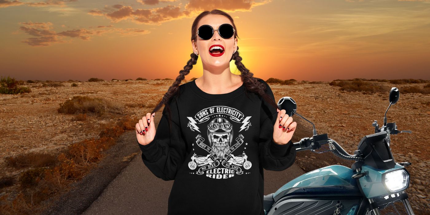 Unsere Kollektion bietet eine Auswahl an einzigartigen Designs, die speziell für E-Chopper, E-Motorrad und E-Motorroller Fans kreiert wurden. Ob lässig oder edgy, jedes Sweatshirt ist ein Hingucker und spiegelt die Dynamik und den Spirit der E-Mobility Welt wider. Dabei setzen wir auf höchste Qualität: Unsere Sweatshirts bestehen aus Bio-Baumwolle und überzeugen durch langlebige Drucke.